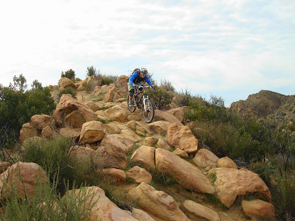 Lorsque cette microtopographie devient plus importante, la notion d’engagement du vététiste apparaît, et familière dans notre métier. Pour l’expliquer, on peut regarder la photo ci dessous. Ce passage est infranchissable à petite vitesse. Pour ne pas se mettre trop en danger, le pratiquant est obligé d’arriver à une certaine vitesse minimum et de réussir certains gestes techniques. Comme pour le franchissement d’une double bosse. Pas droit à l’erreur en quelque sorte… On dit que le vététiste « engage » dans le jargon.