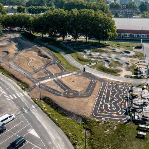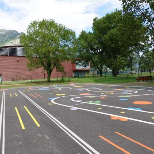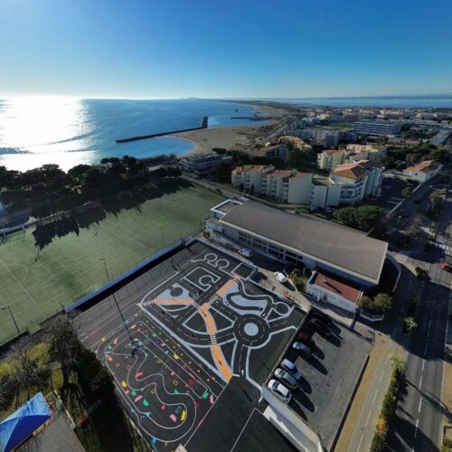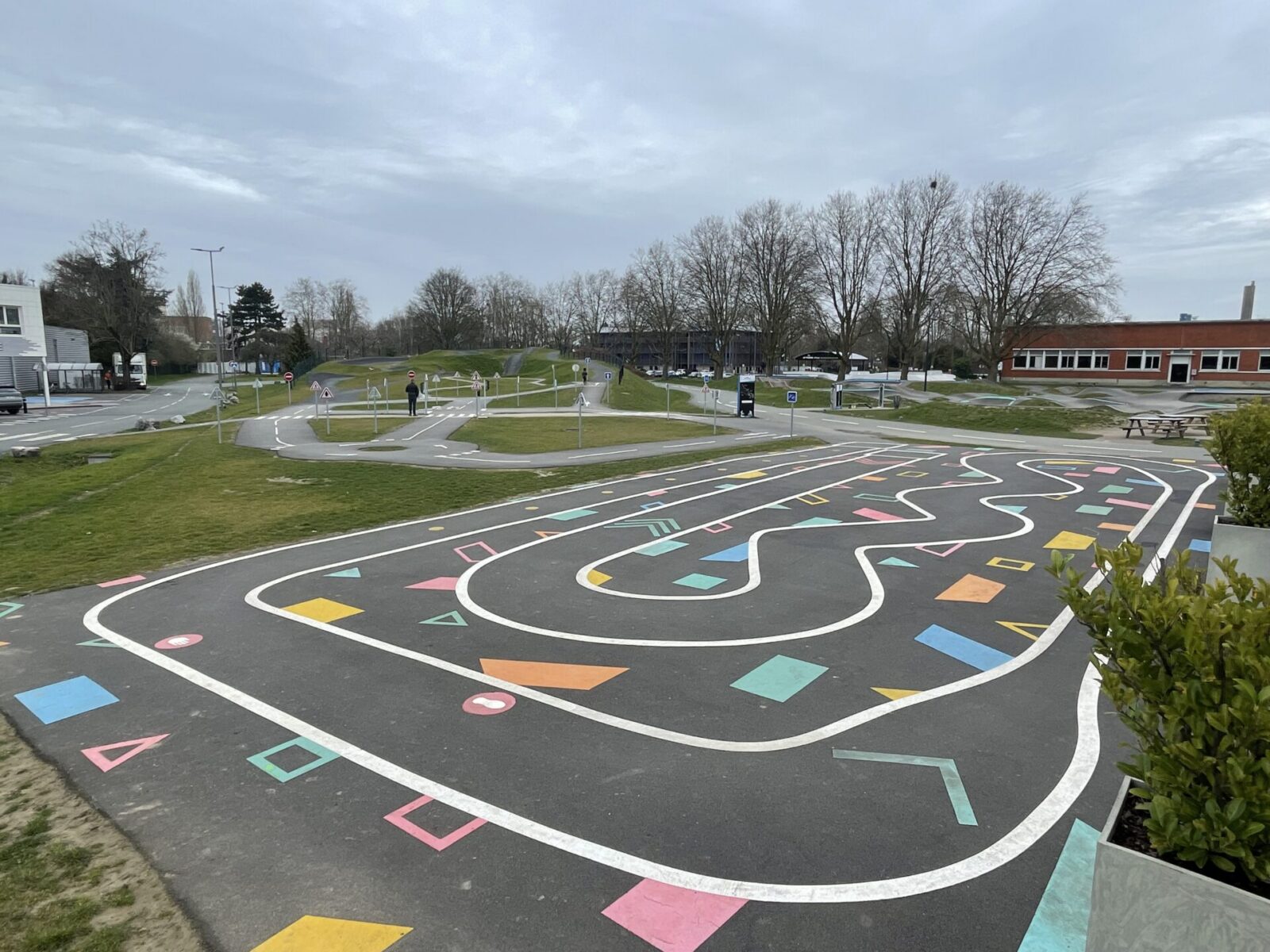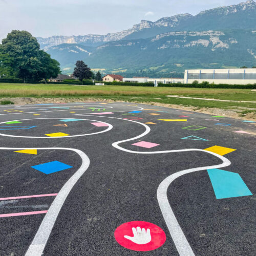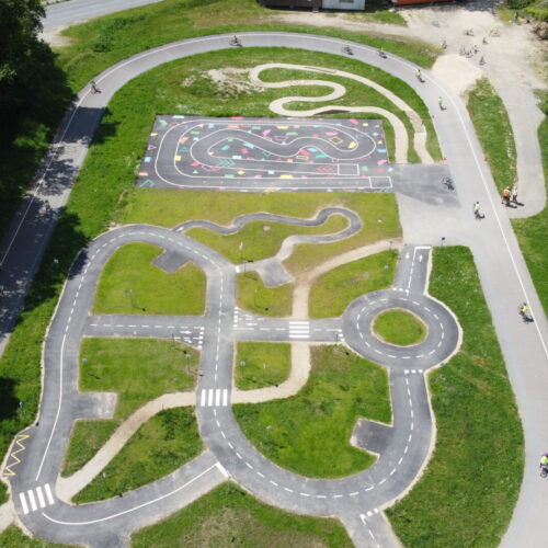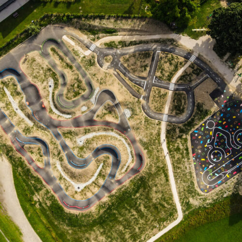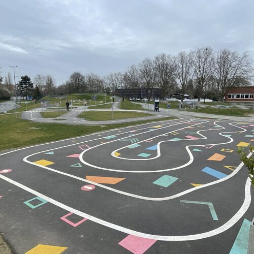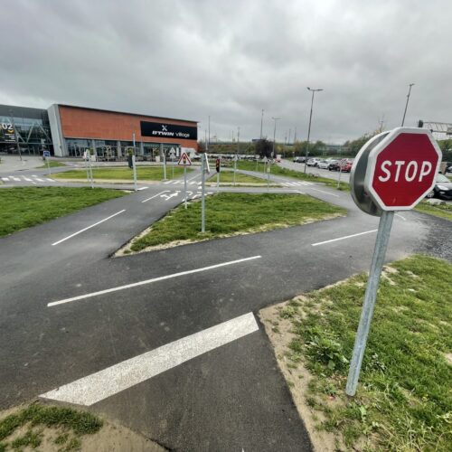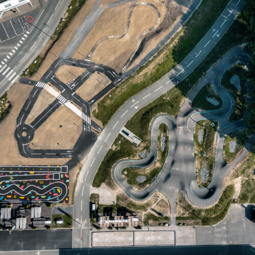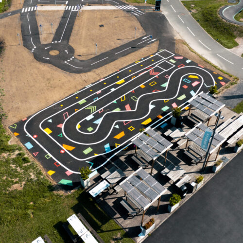 Cet espace de maniabilité ludique et coloré, inspiré des concepts du design actif, répond à la 1ère étape de l’apprentissage : Savoir Pédaler et maîtriser les fondamentaux du vélo. Il s’agit d’acquérir un bon équilibre et d’apprendre à conduire et piloter son vélo correctement : pédaler, tourner, freiner. Nous y avons glissé de nombreux jeux à réaliser avec les formes colorées au sol. Idéal pour activer des terrains inutilisés, tels que des vieux parkings, ou des vieux terrains de sport.