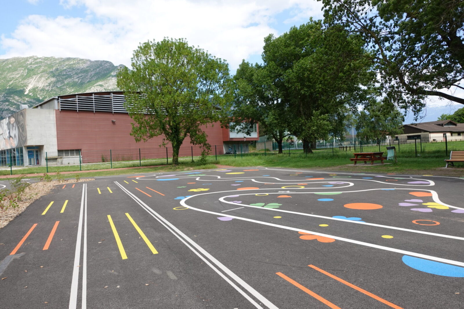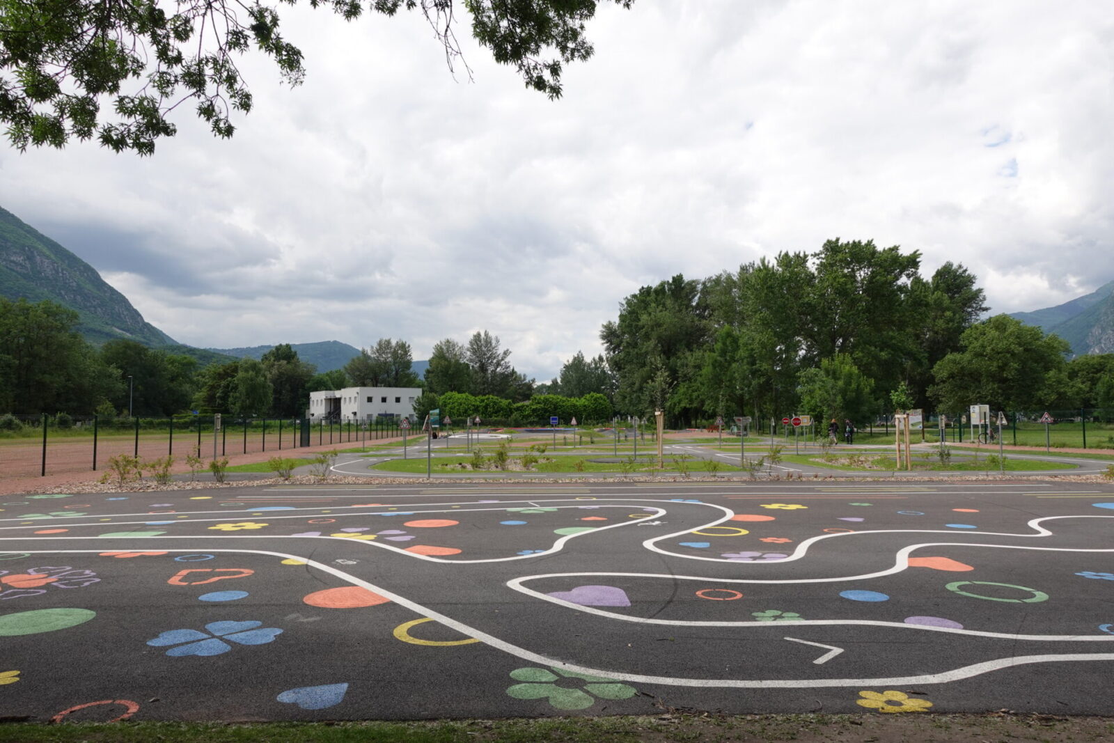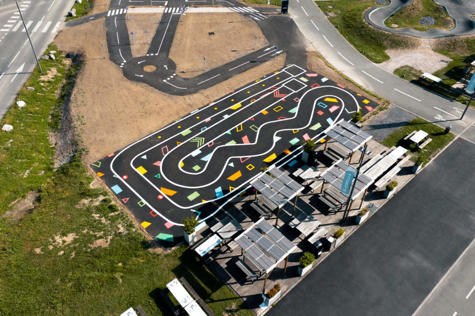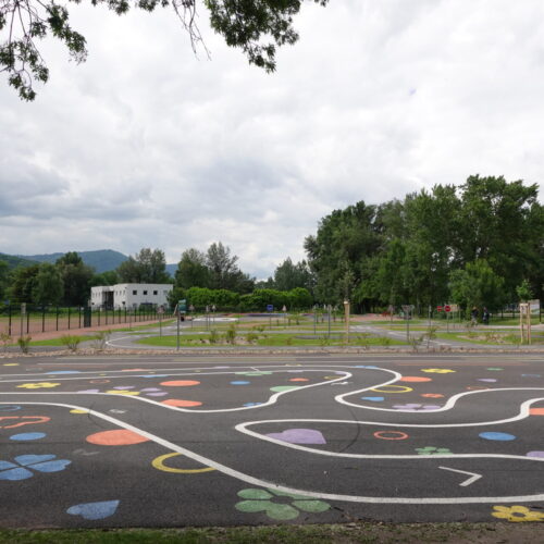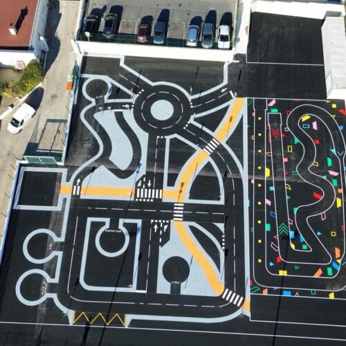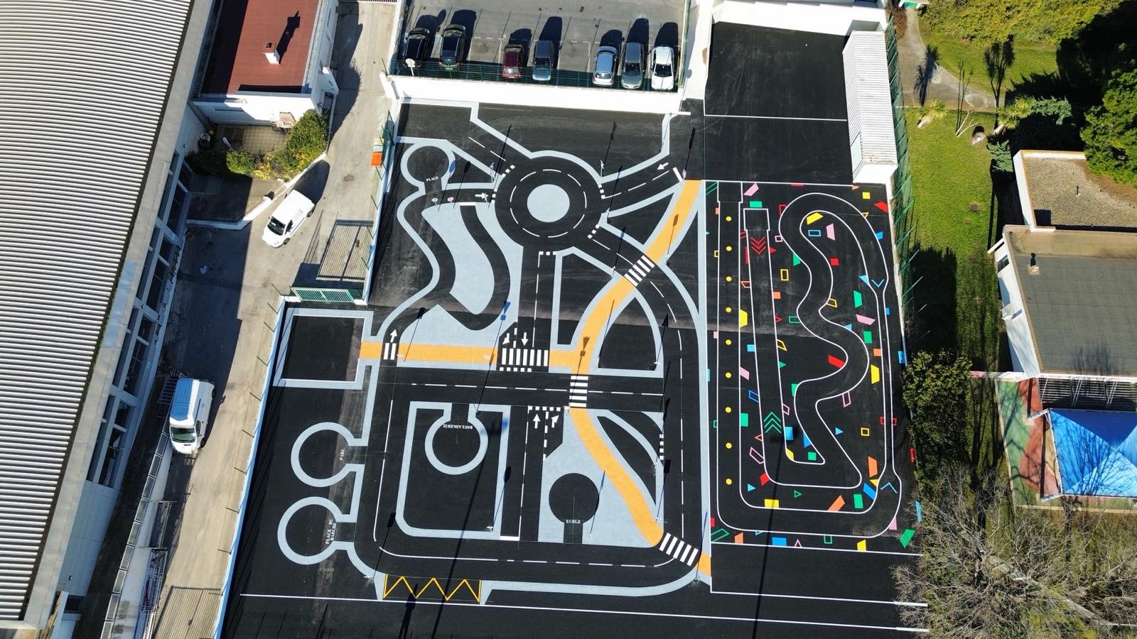 Cet espace de maniabilité ludique et coloré, inspiré des concepts du design actif, répond à la 1ère étape de l’apprentissage : Savoir Pédaler et maîtriser les fondamentaux du vélo. Il s’agit d’acquérir un bon équilibre et d’apprendre à conduire et piloter son vélo correctement : pédaler, tourner, freiner. Nous y avons glissé de nombreux jeux à réaliser avec les formes colorées au sol. Idéal pour activer des terrains inutilisés, tels que des vieux parkings, ou des vieux terrains de sport.
