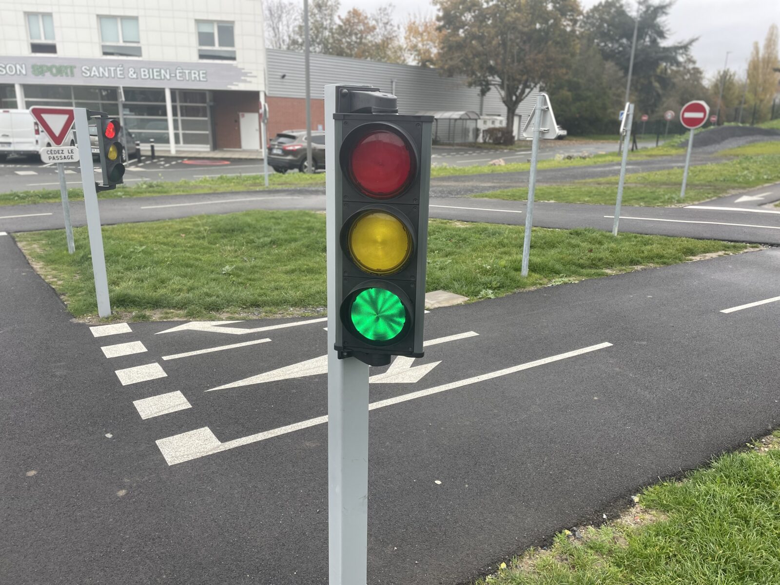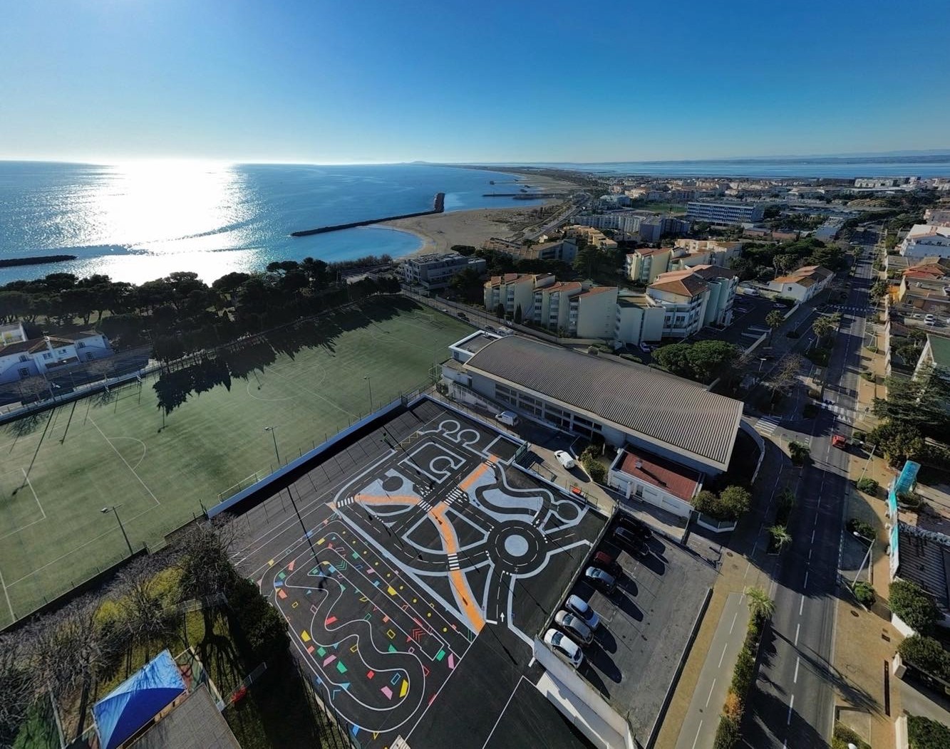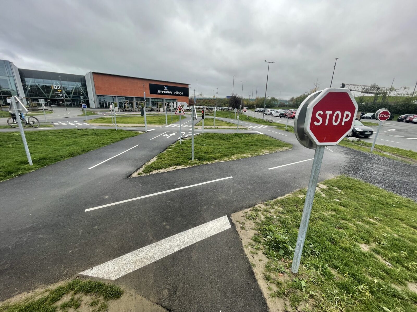 Cet espace de maniabilité ludique et coloré, inspiré des concepts du design actif, répond à la 1ère étape de l’apprentissage : Savoir Pédaler et maîtriser les fondamentaux du vélo. Il s’agit d’acquérir un bon équilibre et d’apprendre à conduire et piloter son vélo correctement : pédaler, tourner, freiner. Nous y avons glissé de nombreux jeux à réaliser avec les formes colorées au sol. Idéal pour activer des terrains inutilisés, tels que des vieux parkings, ou des vieux terrains de sport.