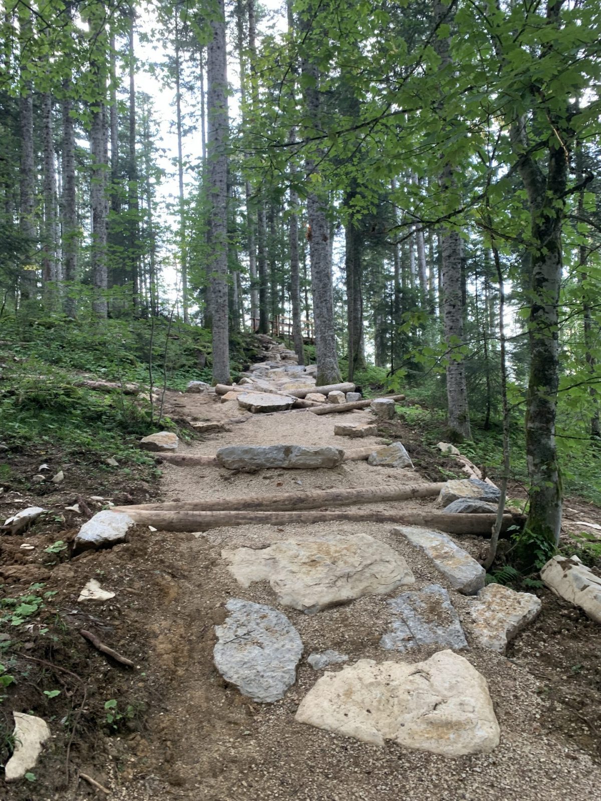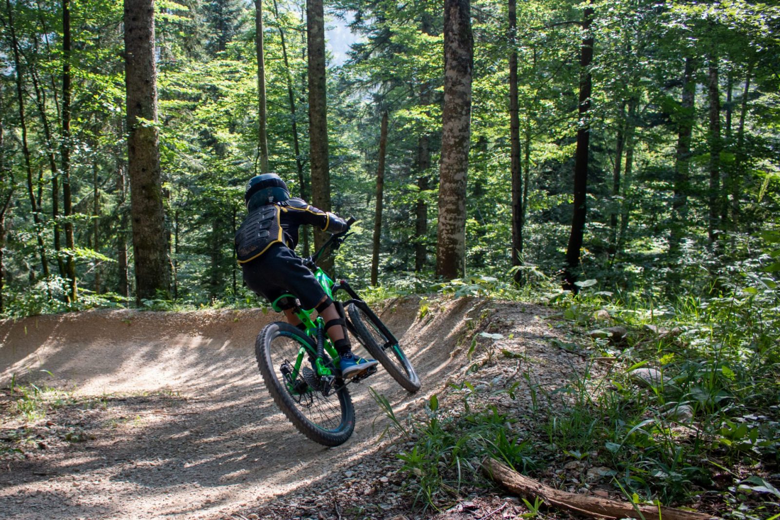 Notre expertise s’étend de la construction de parcours VTT verts très faciles, comme celui ci-contre, jusqu’à la création de parcours de VTT de compétition nationale mondiale (tels que la piste Olympique des Jeux de Paris en 2024, mais aussi des parcours de Coupe du Monde de DH ou Enduro).