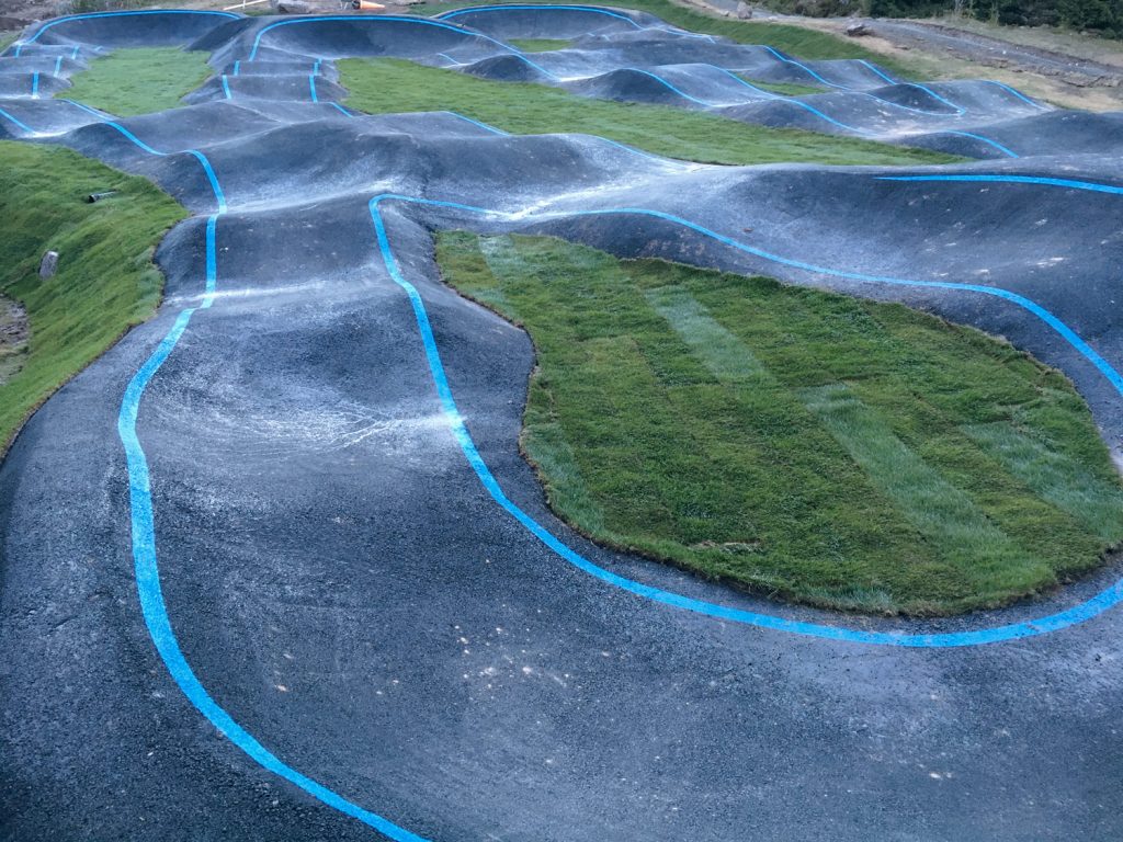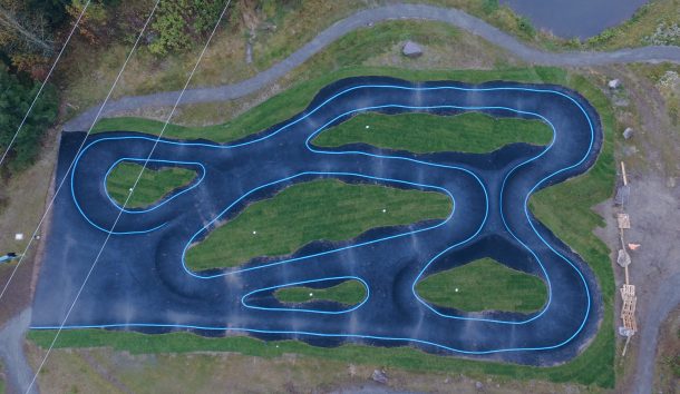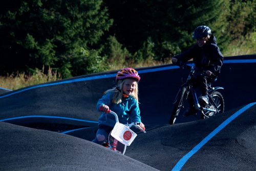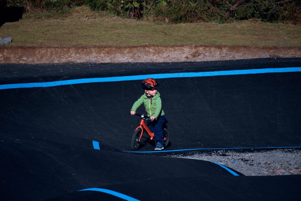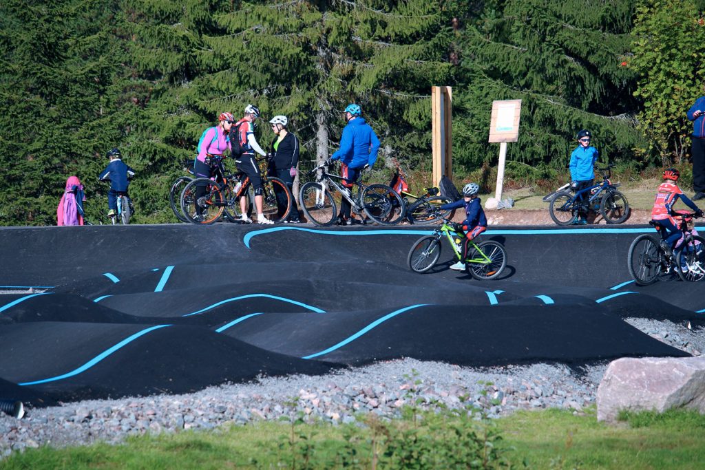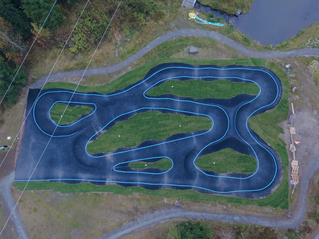 Située à l’entrée de parcours de Cross Country du désormais célèbre secteur de Gullia, la pumptrack est l’un des aménagements les plus appréciés par tous les publics et surtout des enfants. Construite en enrobé, habillée de lignes de peinture élégantes et de gazon roulé très populaire en Norvège, cet ouvrage est un lieu privilégié de détente et d’amusement, au bord d’un petit lac. La pumptrack complète un espace d’apprentissage, des parcours de Cross Country, un jump park, des parcours d’enduro et un flowtrail.