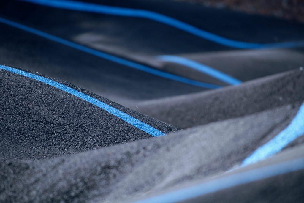 A l’approche de l’hiver, le givre rend l’ambiance magique sur la pump! Cette dernière ne craindra pas l’hiver : le soubassement et les matériaux ont été spécifiquement mis en place pour rendre la pumptrack insensible au gel et au dégel très fréquent dans le Nord et/ou en montagne.